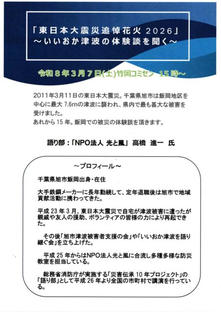 「東日本大震災追悼~祈りの花火in竹岡~」を富津市竹岡にて3月7日に開催
